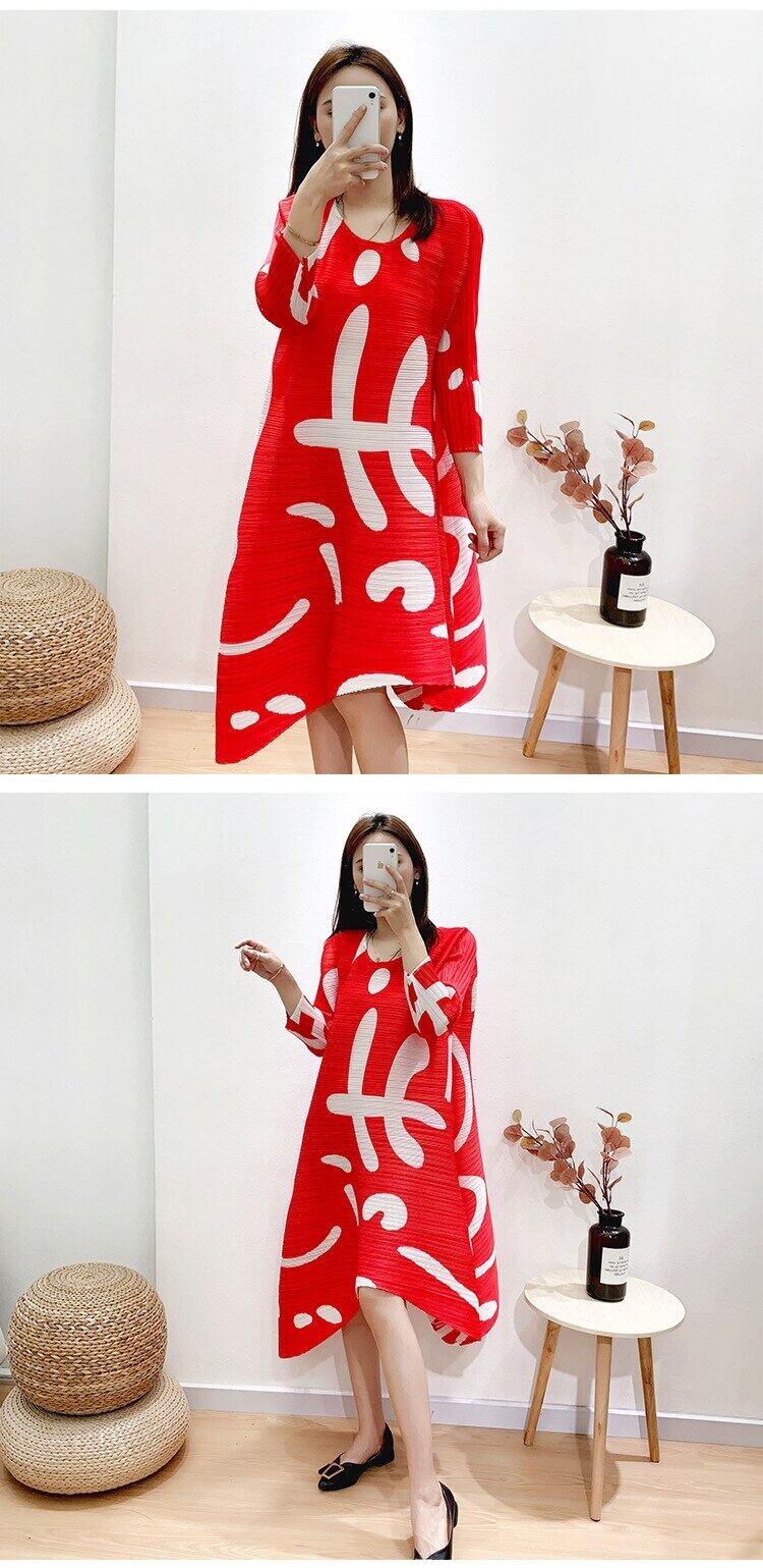 ミヤケ プリーツ レディース ワンピース ヨコ型プリーツ ストレッチプリント おしゃれ ゆったり 大きいサイズ お腹カバーオールマッチワンピース 大きめサイズ