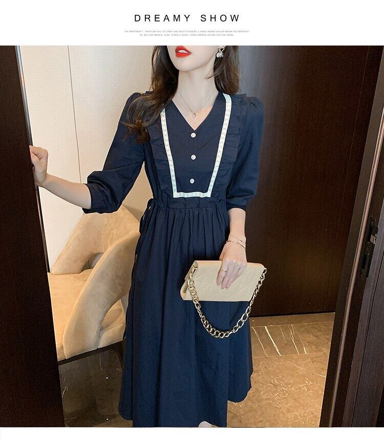 2022 甘い老化菌レースランタンスリーブ A ラインドレスの女性の夏と秋のミディドレス 大人ガーリー スウィート キュート カジュアル サマー 夏物 オータム 秋物 Aライン