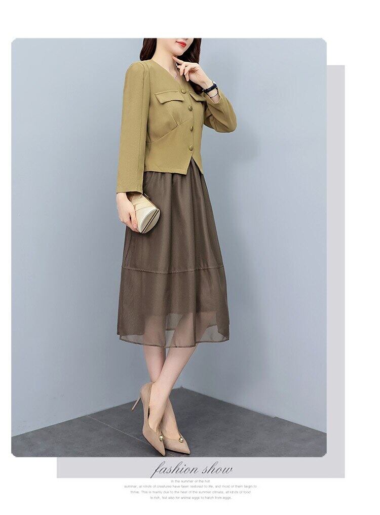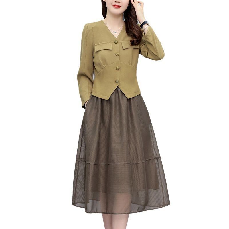 2022 秋の社交ヘップバーン V ネックスーツジャケットレディース秋と冬のメッシュスカート 2 点セット オータム 秋物 ウィンター 冬物 Vネック