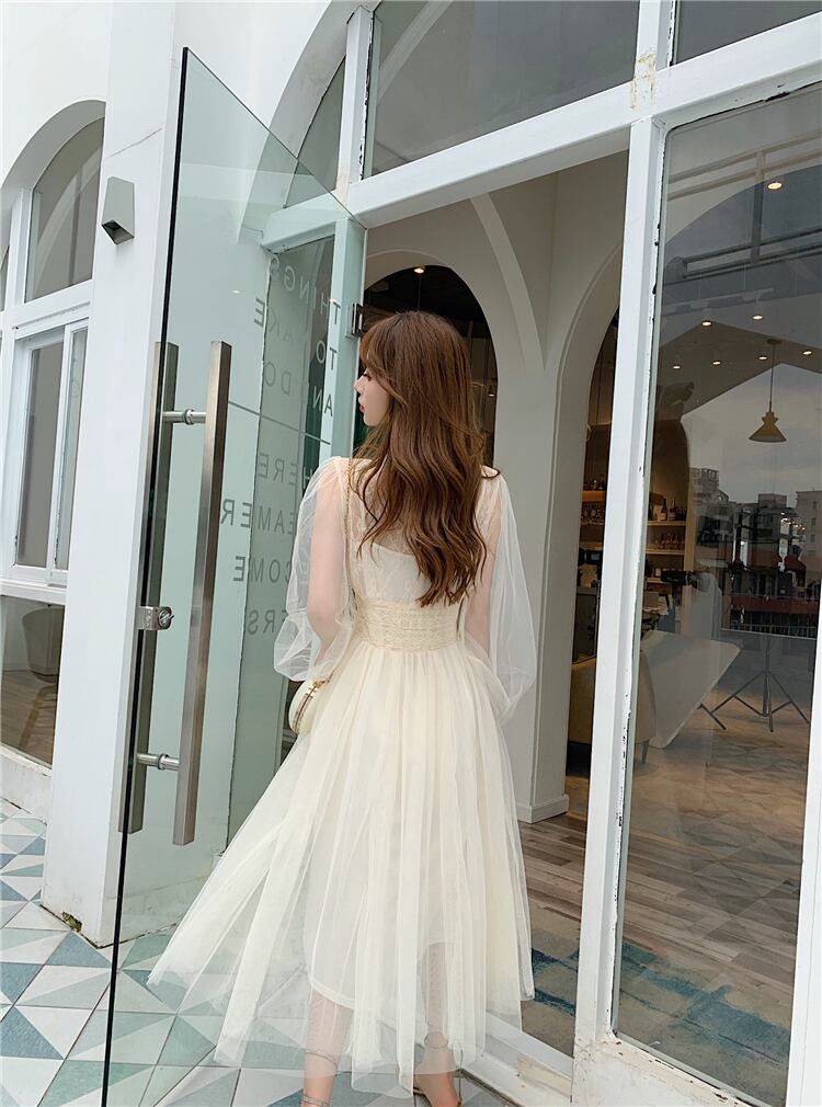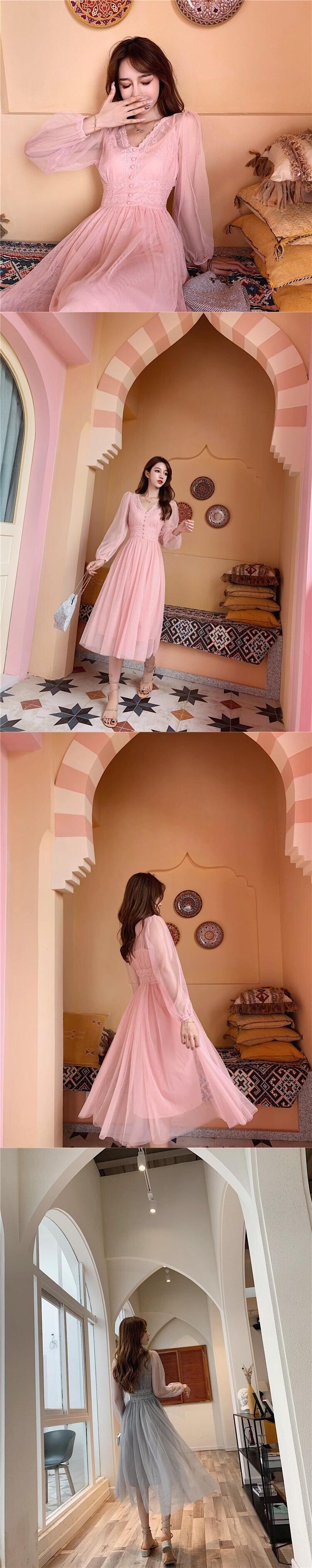春の女性のメッシュドレスレトロ V ネックプリーツパーティードレス女性妖精ドレススリムウエスト夏 Vestidos スプリング 春物 サマー 夏物 Vネック