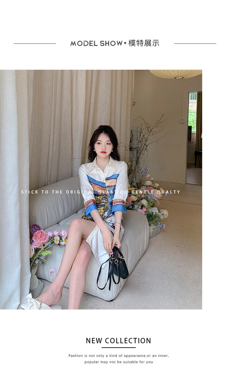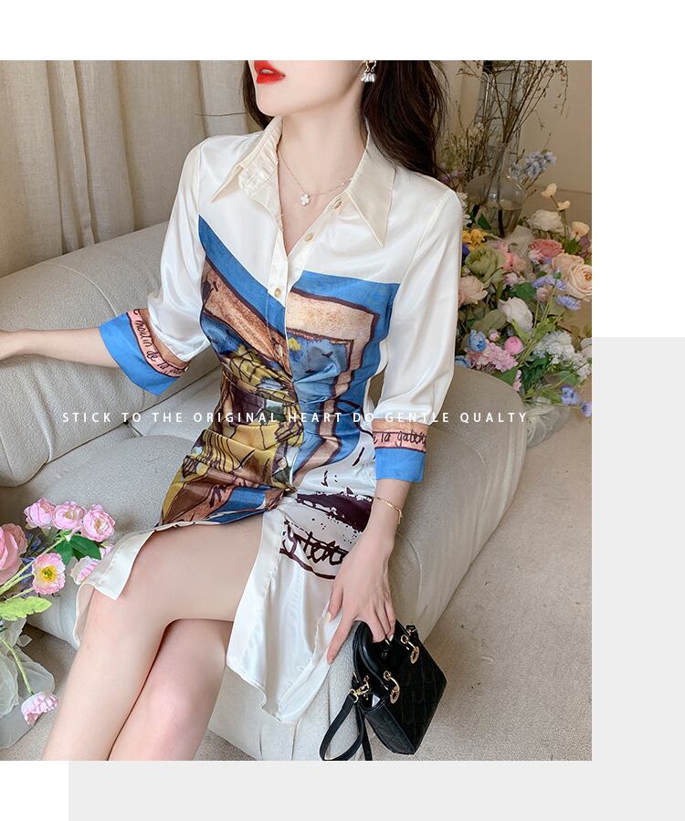 2022 夏のトレンドプリントシャツスカート七分袖の女性の不規則なスリムサテンミニドレスパーティー サマー 夏物