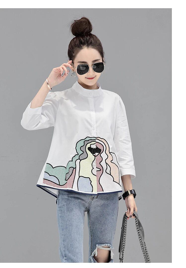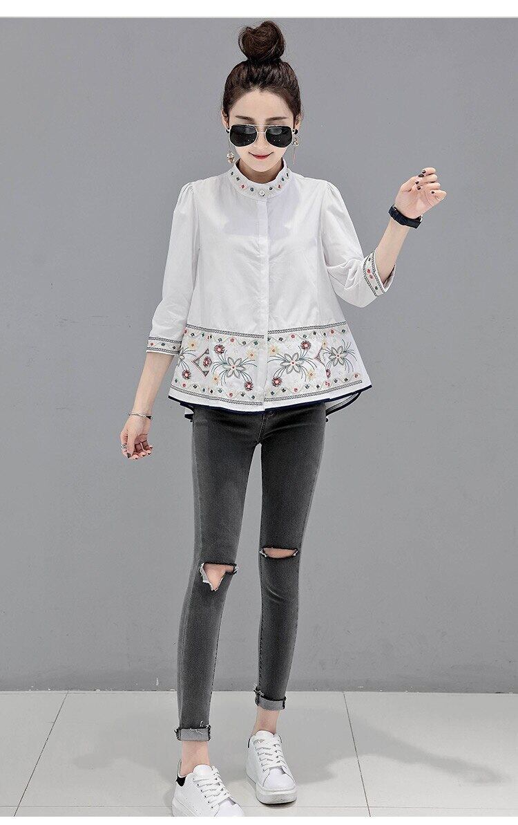 春夏の女 コットン シャツ ブラウス 刺繍 大人ガーリー スウィート キュート カジュアル スプリング 春物 サマー 夏物 花柄 ビンテージ