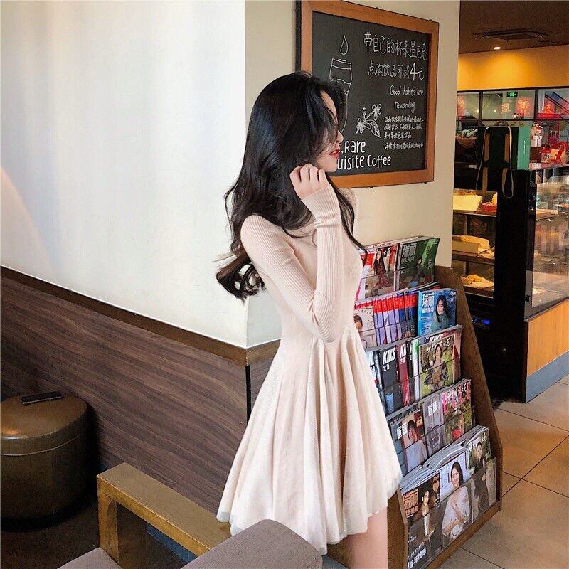 2022 春スパンコールメッシュパッチワークニットドレス女性長袖ウエストスリムパーティーミニドレス Vestidos ロング スプリング 春物