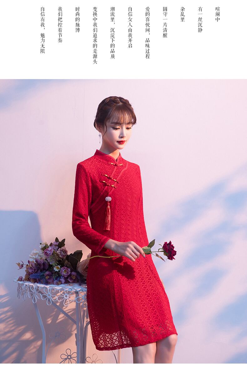 レースドレス女性レッドピンクスリム中国風のドレス改良されたチャイナドレス年クリスマスドレス女性長袖袍 ロング