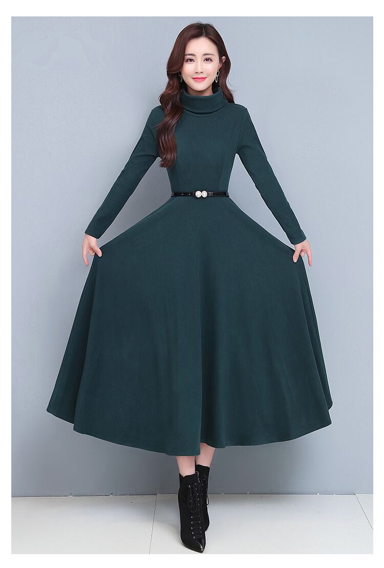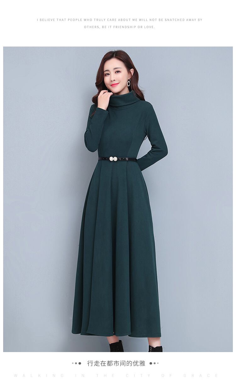 2022 秋冬フランネル厚く暖かいマキシドレスボディコンタートルネックローブ黒パーティー Vestidos ドレス ブラック オータム 秋物 ウィンター 冬物