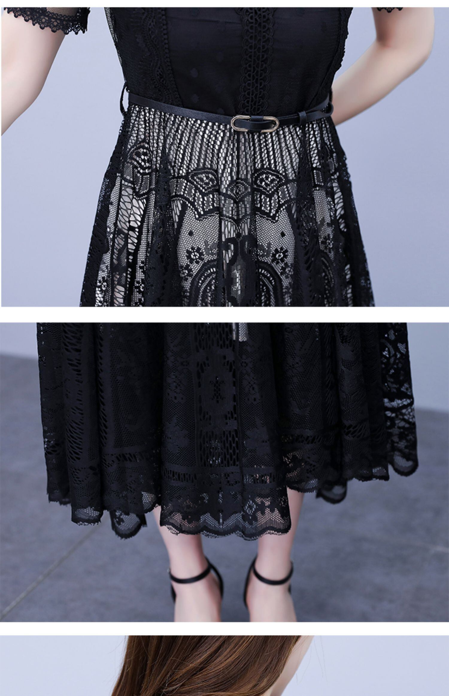 夏のレースメッシュパッチワーク A ラインロングドレス女性半袖ソリッドスリムウエストパーティードレス Vestidos ショート ハーフスリーブ サマー 夏物 Aライン ソリッドカラー