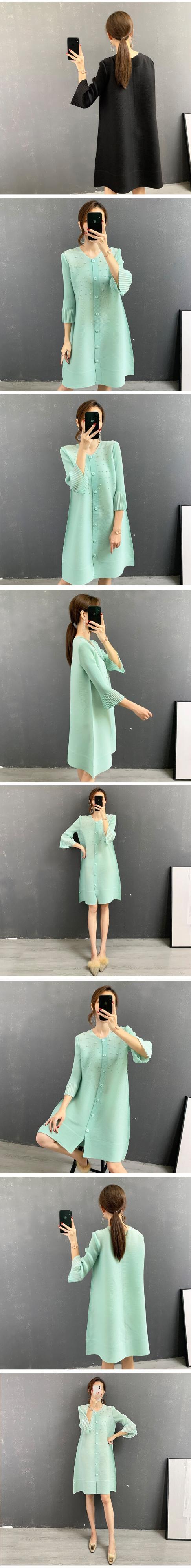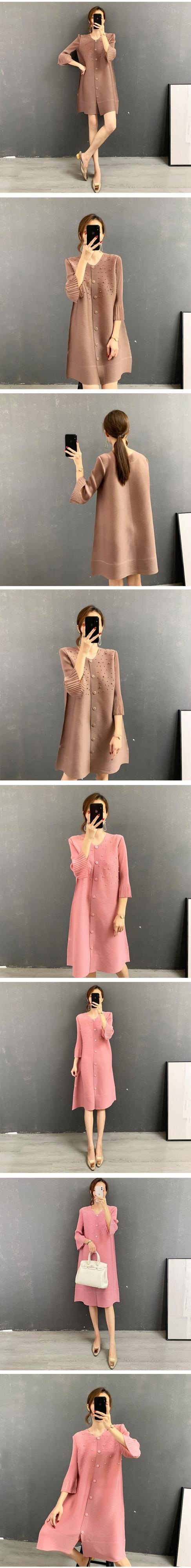 レディース ビーズ シンジャケット 七分袖 Vネック シングルブレスト ルーズ ミヤク プリーツ アウターウェア