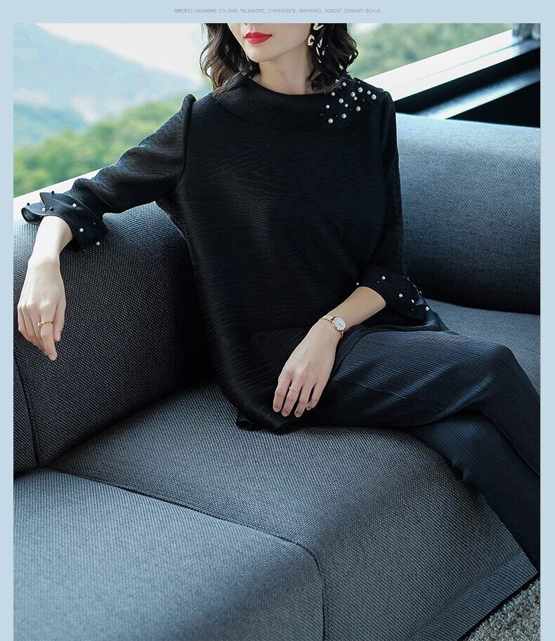 プリーツ春夏の女 フレアスリーブ 大きめサイズ スプリング 春物 サマー 夏物
