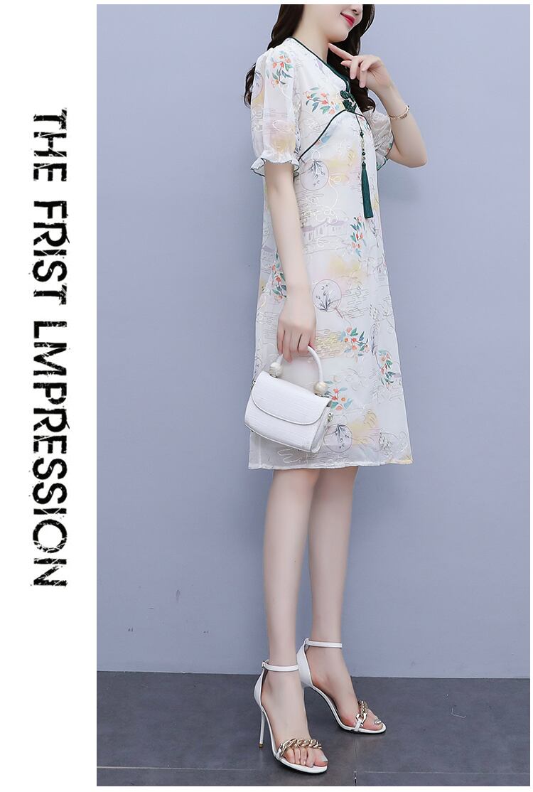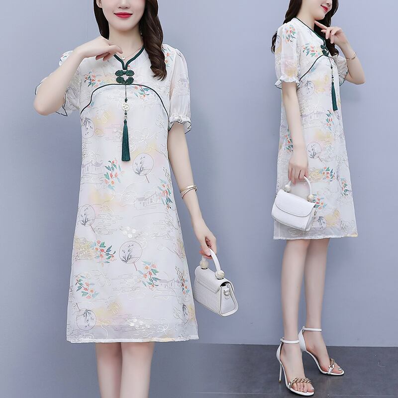 2022 夏大サイズの女性のイブニング中国風の緩いスリム変更されたチャイナ刺繍ドレス レッド 大きめサイズ サマー 夏物