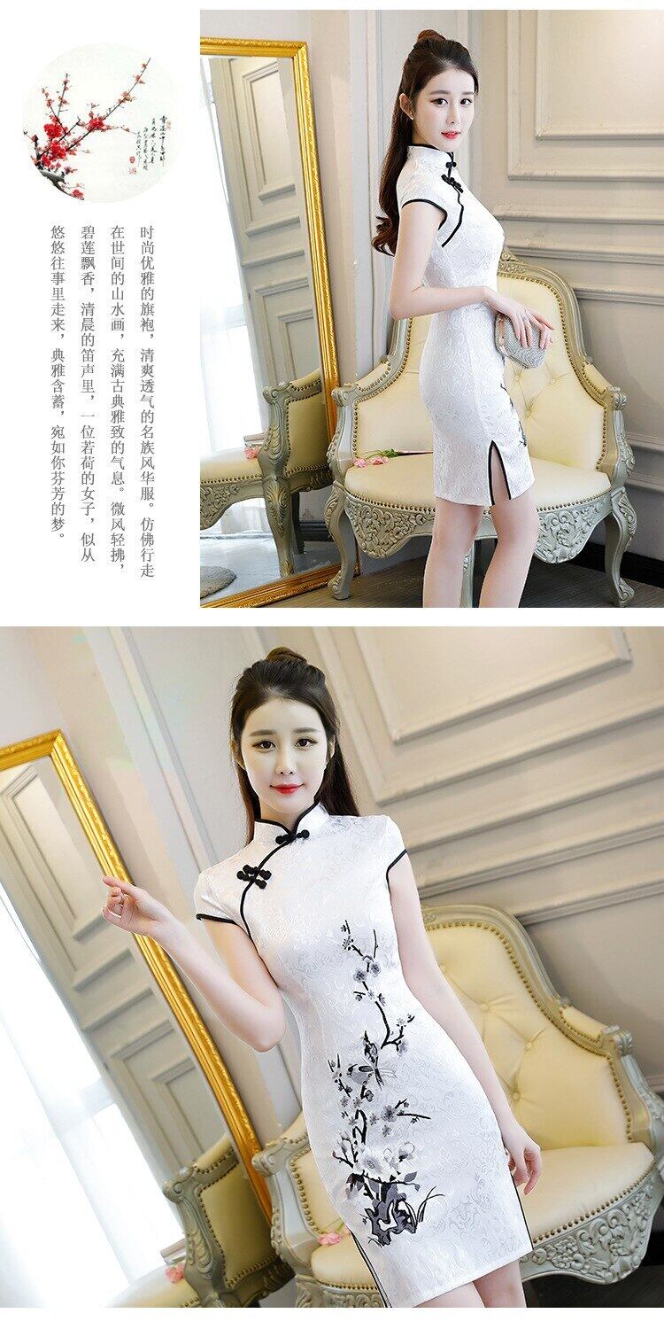 改良版チャイナドレス 半袖 スタンドカラー 花柄 中華風 スプリットk スリム ミニドレス 袍 ショート ハーフスリーブ