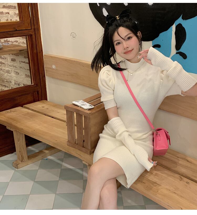 秋冬ハッブルスリーブワンピースY2 Kdressパーソナリティカフ無地ボディコンミニニットドレス オータム 秋物 ウィンター 冬物 ソリッドカラー