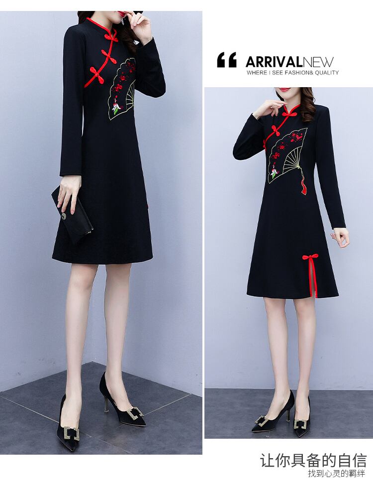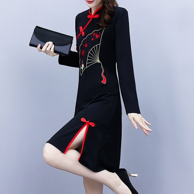 2021 秋長袖スタンドカラーバックルスプリット 18k 改良されたチャイナ女性中国風のドレス服 ロング オータム 秋物