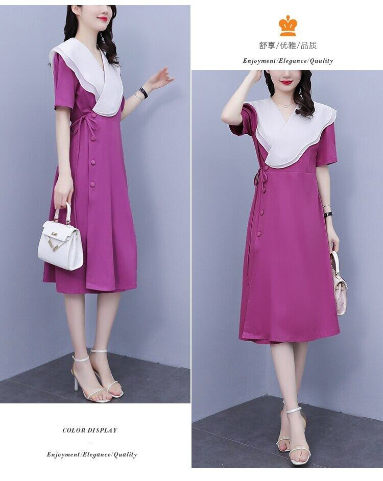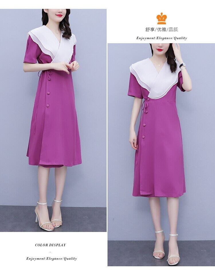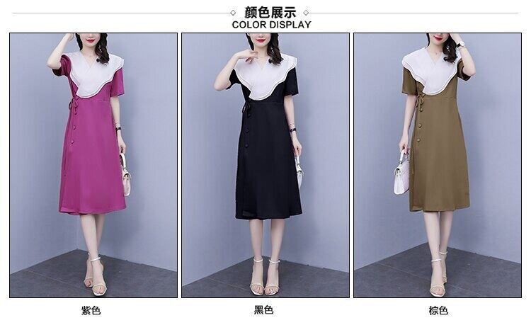2022 春と夏のレトロなドレスの女性のウエスト V ネックシフォンステッチネクタイウエストドレスプラスサイズ 5XL 大きめサイズ スプリング 春物 サマー 夏物 Vネック