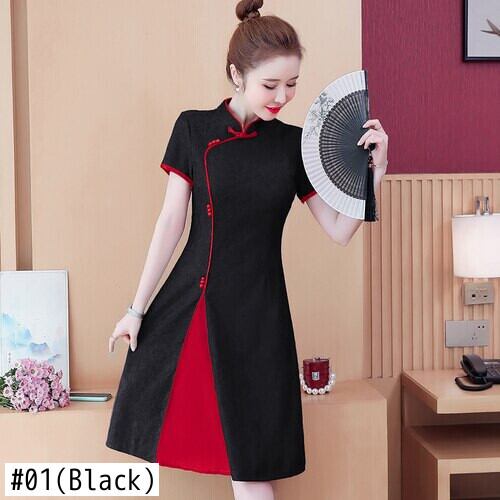 レースパッチワーク若い女性袍夏半袖中国スリム改良されたチャイナドレスレトロドレス ショート ハーフスリーブ サマー 夏物
