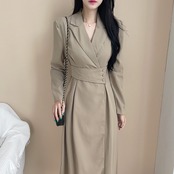 春の Y2k スタイル スーツ ドレス-エンド長袖ローブ シングルブレスト スリム チュニック ドレス Vestidos デ ロング スプリング 春物