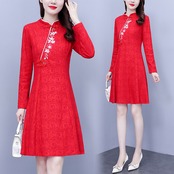 春と秋の中国風のレトロなブライダル赤いドレス大サイズ刺繍改良されたチャイナドレス高貴なドレス 4xl レッド 大きめサイズ スプリング 春物 オータム 秋物