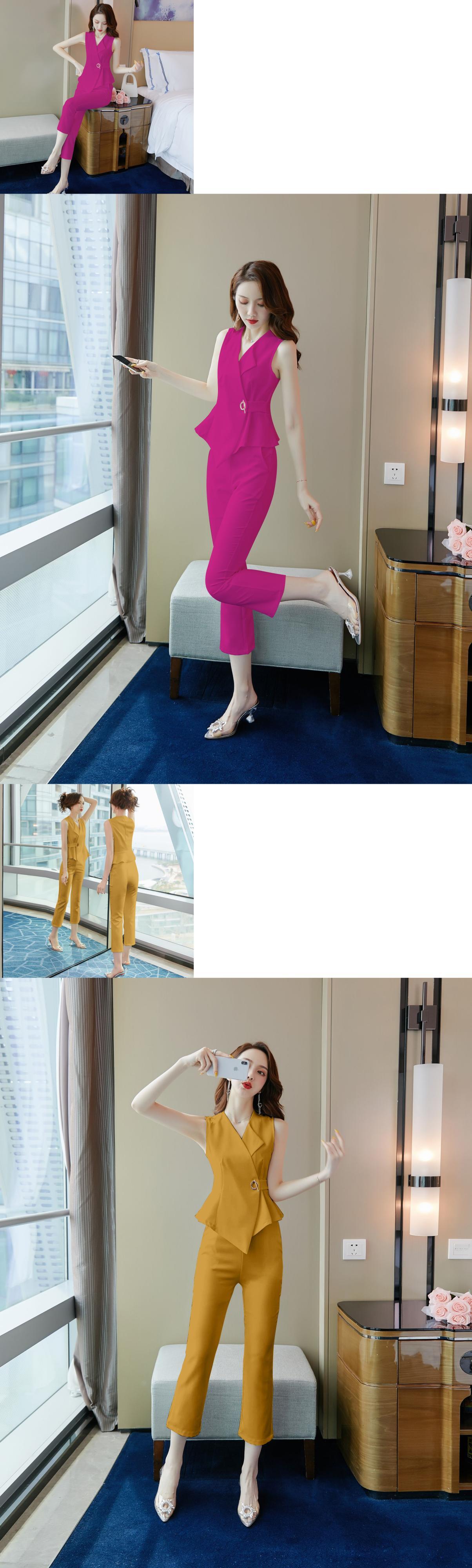 ノースリーブ スーツ 衿 アシンメトリー ウエスト トップス OL 仕事 ワイドレッグ ロングパンツ 2点セット レディース コーデ ワイドパンツ