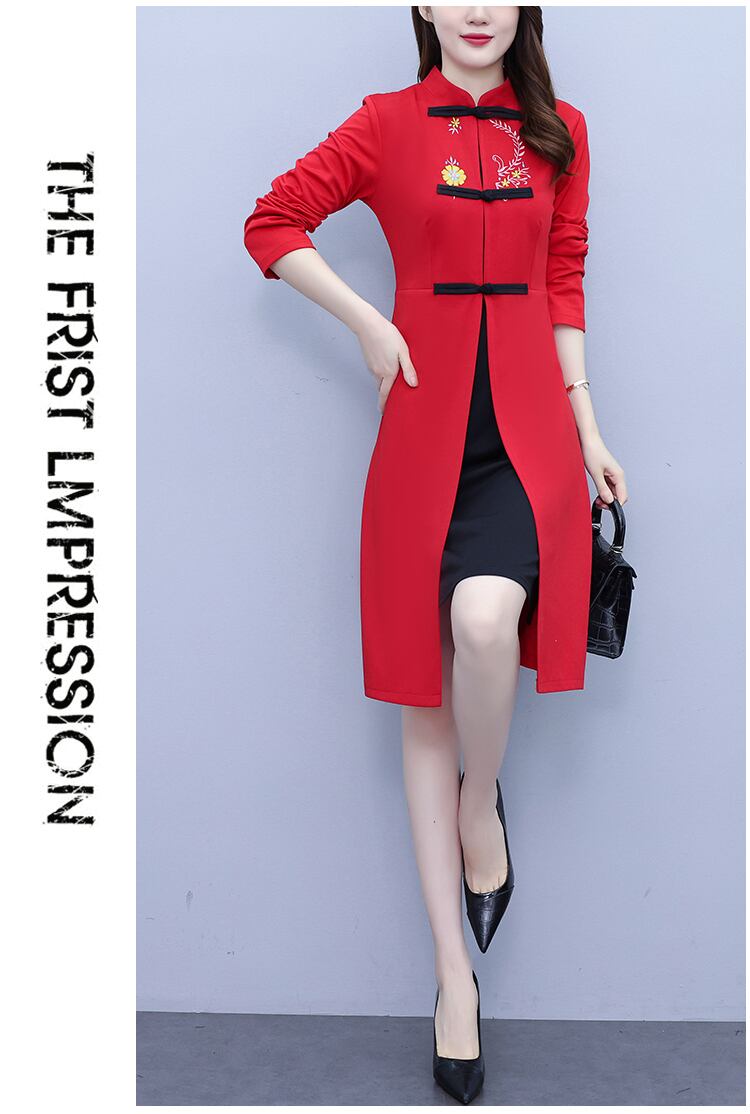 2023 旧暦チャイナドレスバックル長袖刺繍偽 2 変更されたビーズ袍ドレス ロング