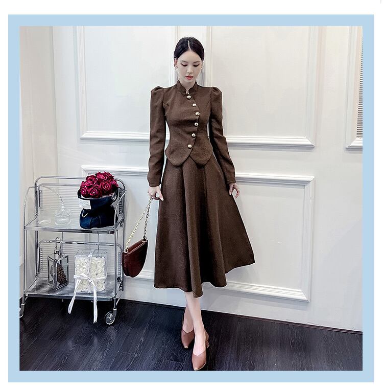 女性 2 ピース セット レディース衣装冬ドレス セット ローブ シングル ブレスト ジャケット コート + A ライン ミディ スカート ウィンター 冬物 Aライン