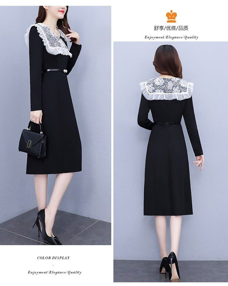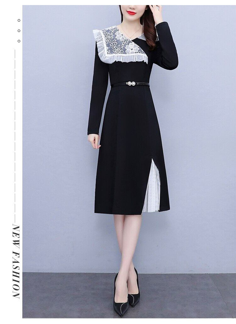 春長袖レース パッチワーク膝丈ドレス女性 V ネック ウエスト ドレス ベルト Vestidos ロング スプリング 春物 ハーネス Vネック