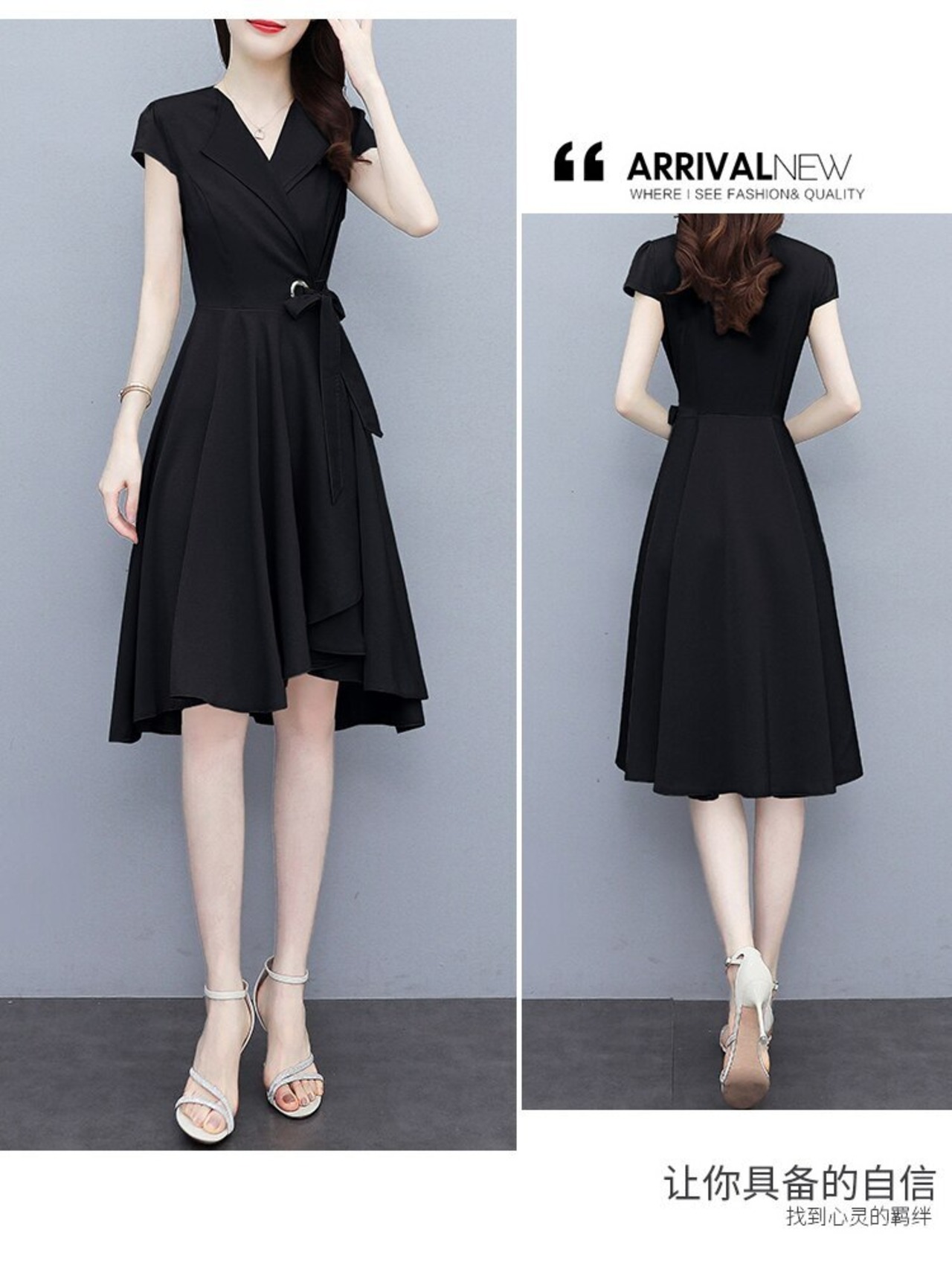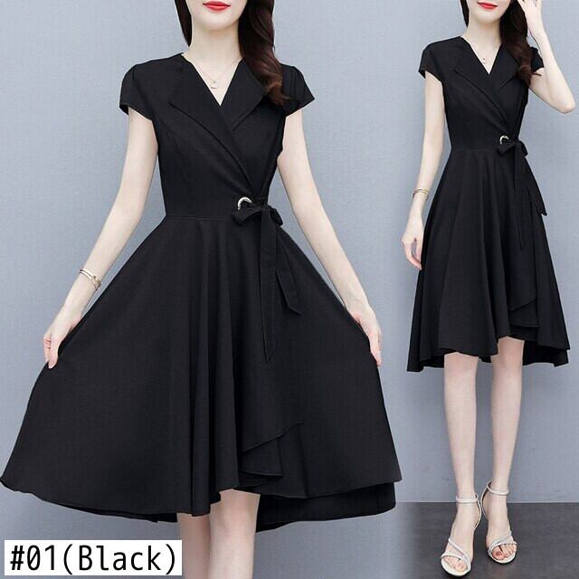 2021 レディオフィス半袖ウエストレースアップ膝丈ドレス女性の夏の無地スリムパーティープリーツドレス ショート ハーフスリーブ サマー 夏物 ソリッドカラー 会社 学校 通勤や通学にも