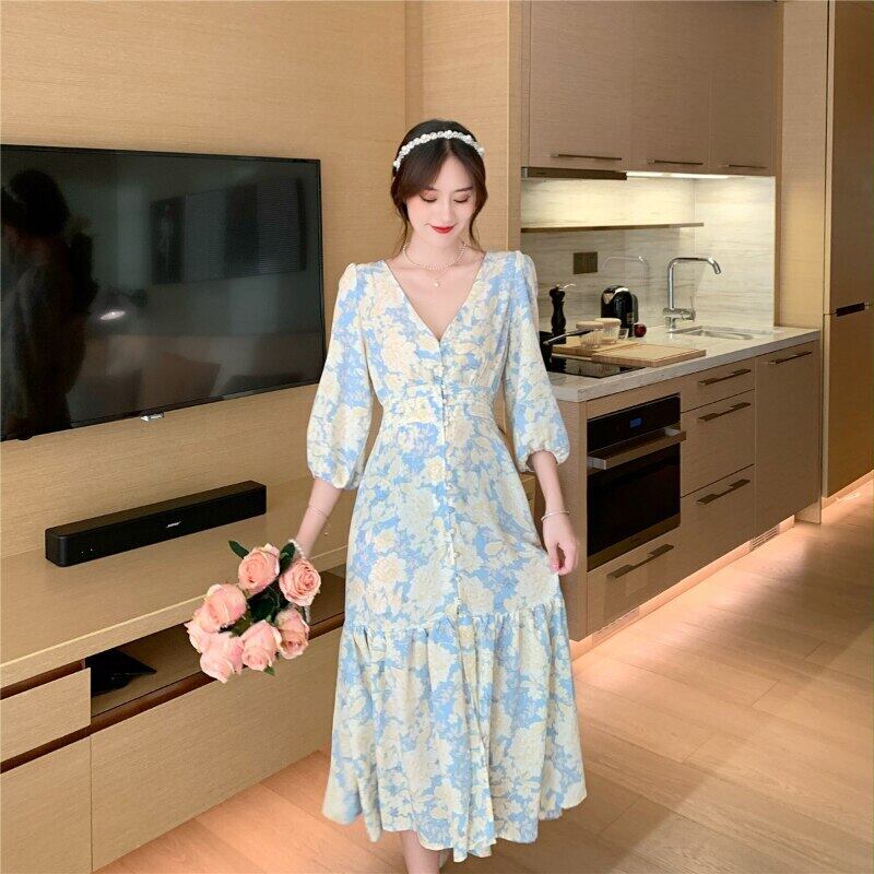 女性ドレス Za 花柄カスケード フリル V ネック スリム ウエスト スリット A ライン ドレス春 Vestidos ラッフル スプリング 春物 Vネック Aライン
