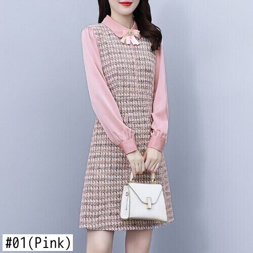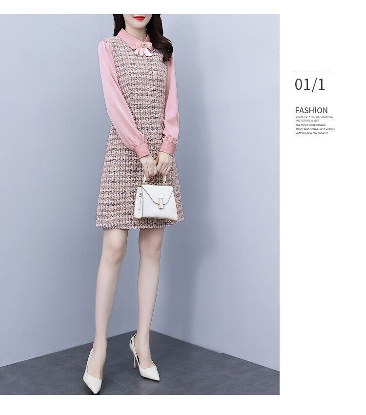 女性の甘いフェイク ツー ピース セット ドレス シングルブレスト パーティー ストリート ツイード シフォン パッチワーク ドレス Vestido 大人ガーリー スウィート キュート カジュアル