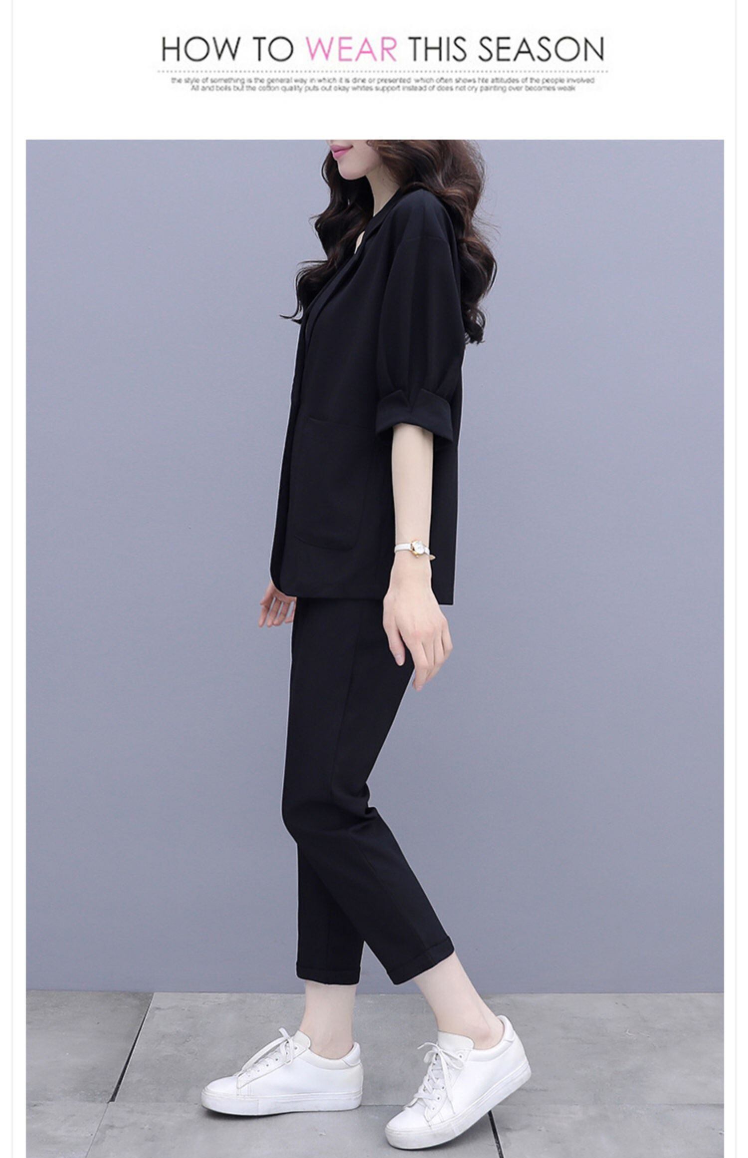 オフィススーツ春ハーフスリーブシングルバックルブレザー弾性ウエストクロップドパンツ女性服セット 半袖 エラスティック 伸縮 スプリング 春物 会社 学校 通勤や通学にも