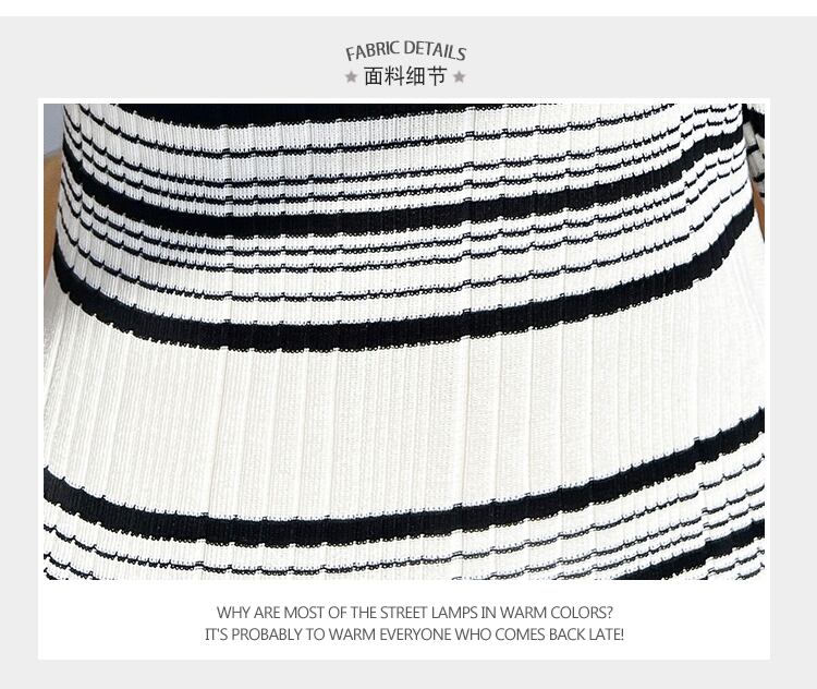 秋と春のニットセータードレス 黒と白のストライプ スタイリッシュな長袖 シック スリム 伸縮性 すべてのマッチ ストリートウェア ロング ホワイト ブラック エラスティック スプリング 春物 オータム 秋物