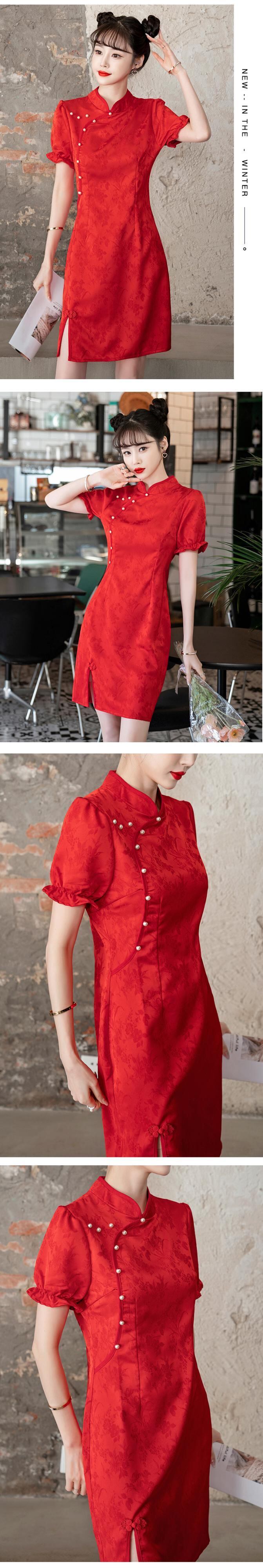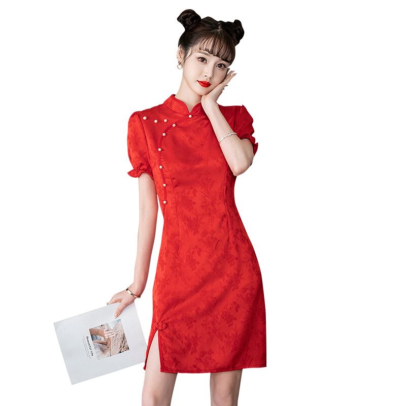 2022 トレンド年齢減少レトロ改良されたチャイナドレスチャイナタウン赤黒中国の結婚式のイブニングパーティードレスミニ レッド ブラック
