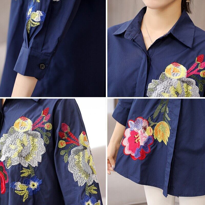 スタイル花春ブラウスターンダウン襟不規則なシャツの女性ルーズオフィスブラウス潮 スプリング 春物 花柄 会社 学校 通勤や通学にも
