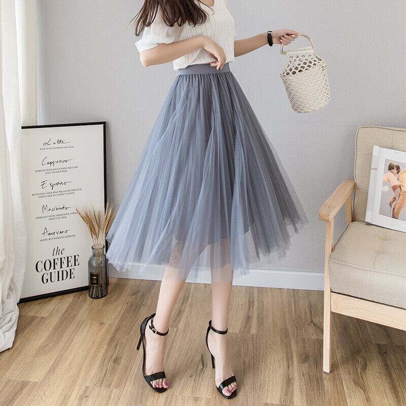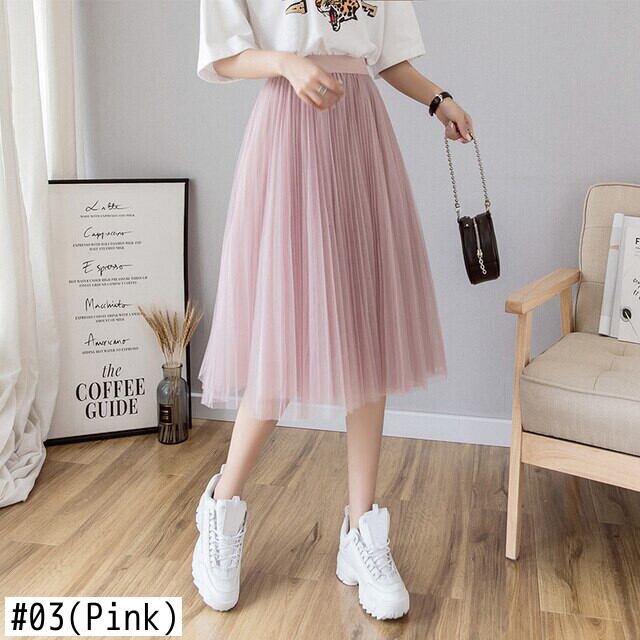チュールスカートレディースミディプリーツスカート黒ピンクチュールスカート女性 2019 春夏弾性ウエストメッシュチュチュスカート ブラック エラスティック 伸縮 スプリング 春物 サマー 夏物 パニエ ペチコート