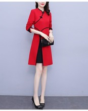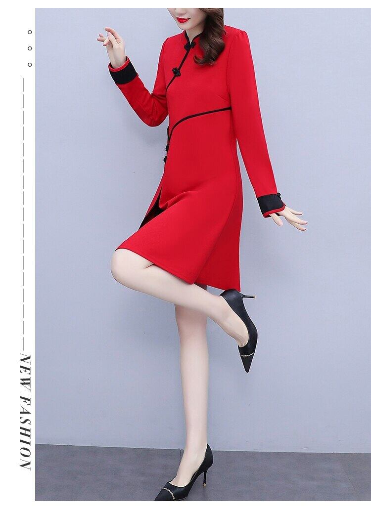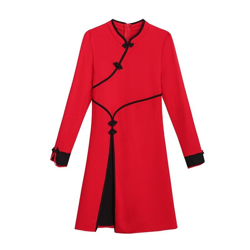 中国の年ドレス女性長袖スタンドカラーバックルスリムパーティー赤チャイナドレス袍 CNY ロング レッド