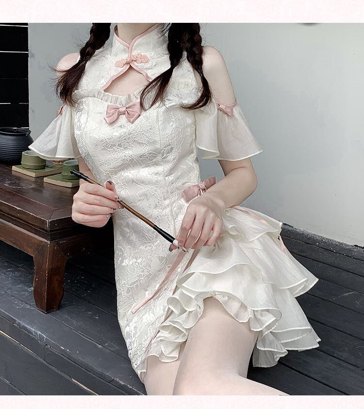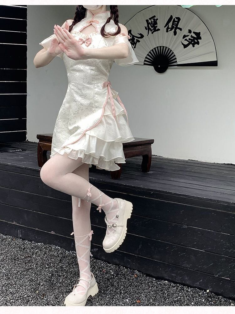 レトロなロリータ スタイル Y2K 2022 夏改良されたチャイナ袍シックな感覚不規則な A ライン ニッチ中国ドレス ローブ サマー 夏物 Aライン