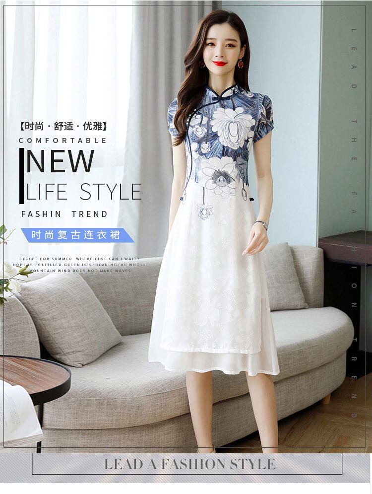 花柄プリント パーティー ドレス夏の女性のレトロなナショナル スタイル ウエスト チャイナ レディ Qipao サマー 夏物