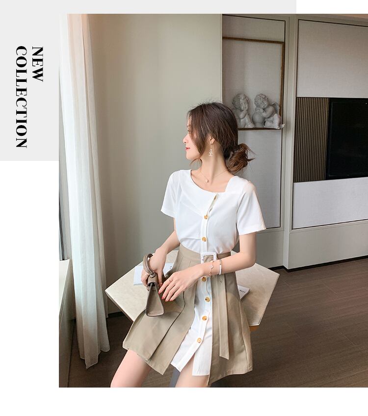 女性の夏のシャツドレススタイリッシュなパッチワーク 2 ピースドレスシングルブレスト半袖ミニドレス ショート ハーフスリーブ サマー 夏物