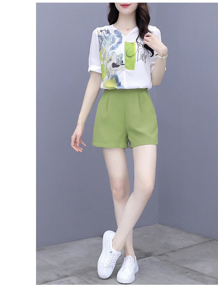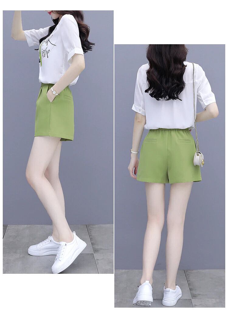 半袖VネックTシャツ+ワイドレッグショーツ2ツーピーススーツ衣装女性夏プリントシャツルーズセット ショート ハーフスリーブ サマー 夏物 ブルマー ワイドパンツ
