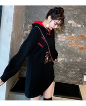 長袖中国風の刺繍改良されたチャイナフード付きスウェットシャツの女性バックル緩い女性パッチワークパーカートップ ロング