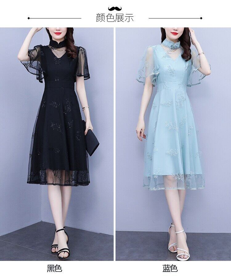 セクシーなプラスサイズの女性の夏のレトロな黒青無地絶妙な中空シフォンドレスサンドレス ブルー ブラック 大きめサイズ サマー 夏物 ソリッドカラー