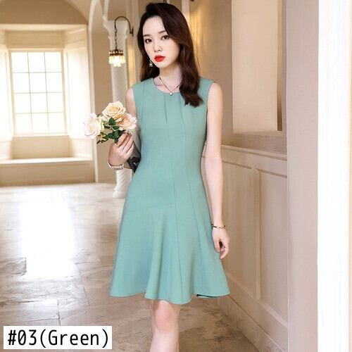ノースリーブスリムミニドレスオフィス夏ラウンドネックソリッドフォールド A ライン底入れタンクドレス女性 Vestidos サマー 夏物 Oネック Aライン ソリッドカラー 会社 学校 通勤や通学にも