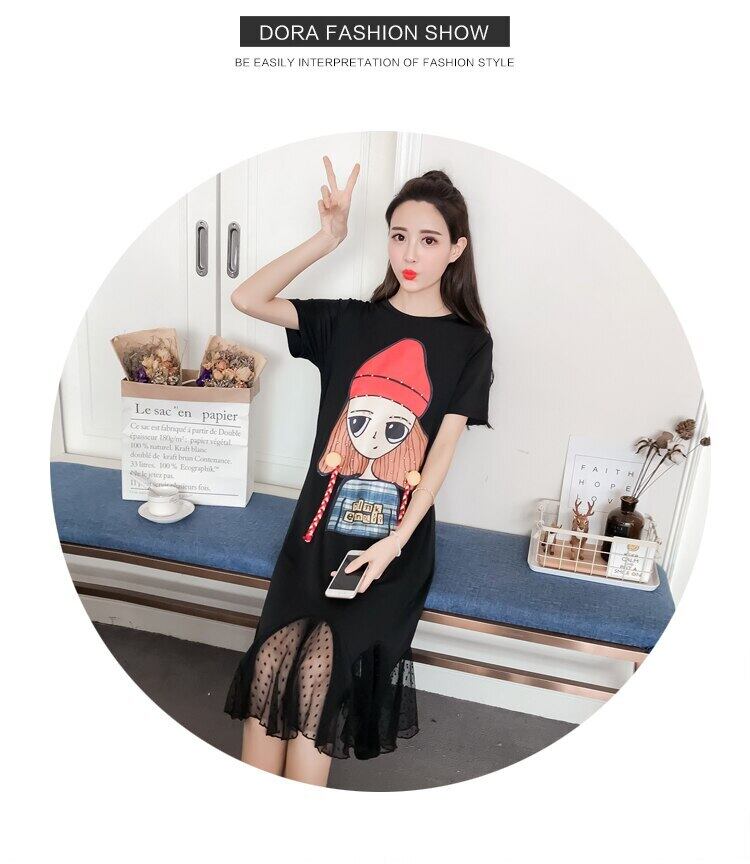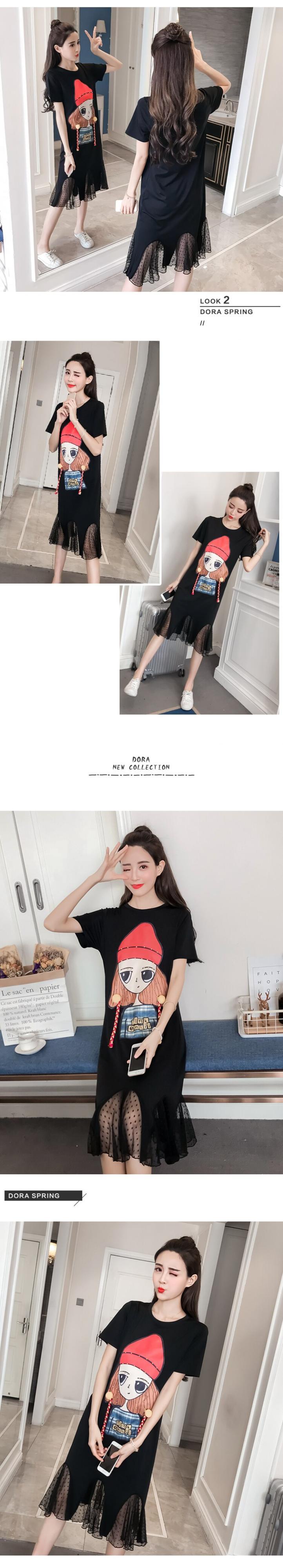 2022 夏プリントフリルメッシュパッチワークミッドレングスドレス女性半袖 O ネックルーズ A ラインドレス ショート ハーフスリーブ ラッフル サマー 夏物 Oネック Aライン