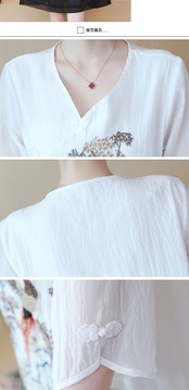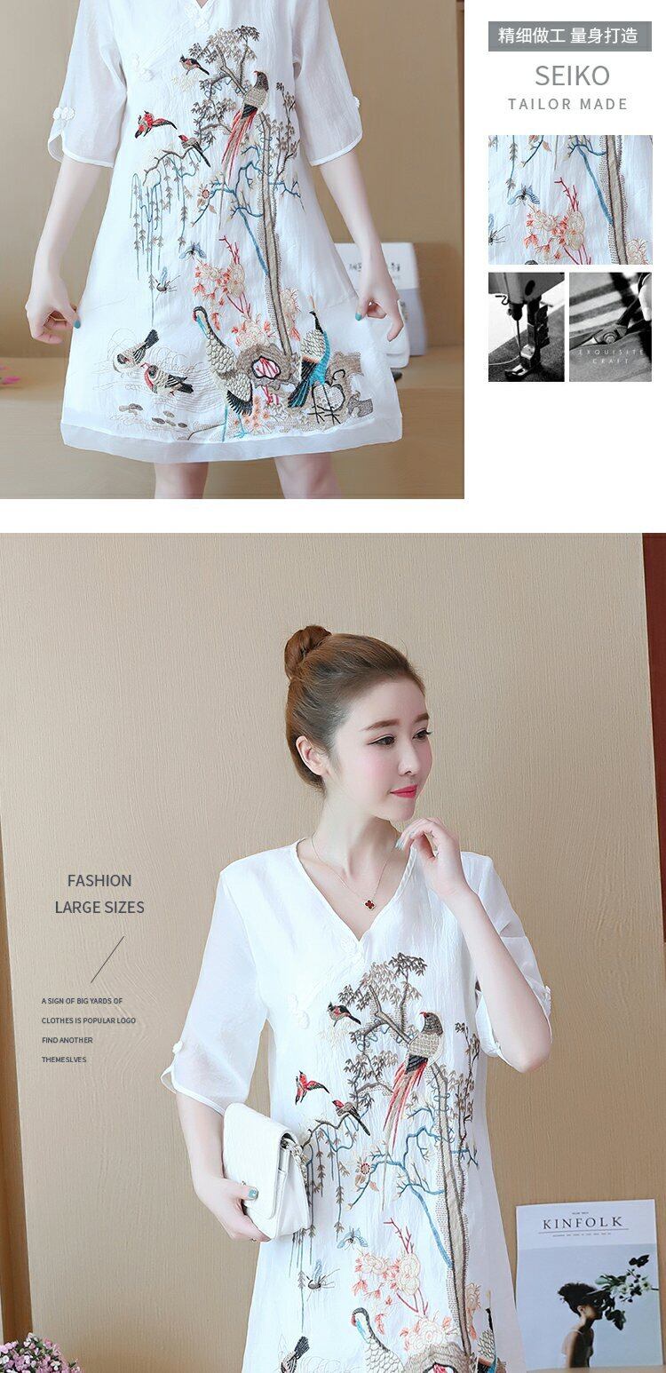 半袖 A ラインドレス女性花刺繍 V ネックミニドレス中国風の改良されたチャイナドレス夏服 ショート ハーフスリーブ サマー 夏物 花柄 Vネック Aライン