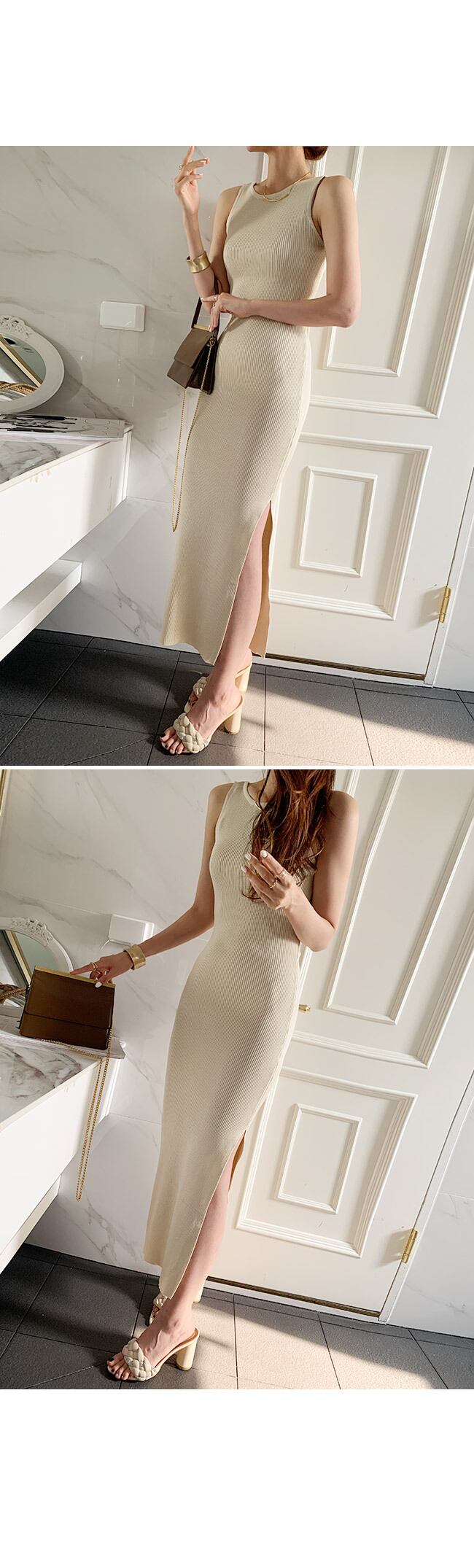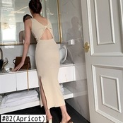 夏のセクシーな背中の開いたボディコン ドレス女性ノースリーブ ラウンド ネック無地パーティー スプリット スリム ロング ドレス服 サマー 夏物 Oネック ソリッドカラー