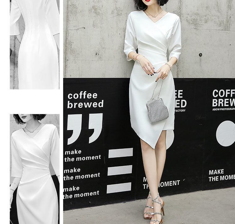 スリムフォールド不規則なドレス夏半袖 V ネック無地ヒップラップ気質ミニドレス女性服 ハーフスリーブ サマー 夏物 Vネック ソリッドカラー