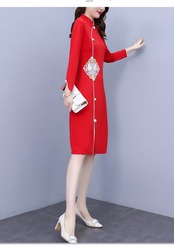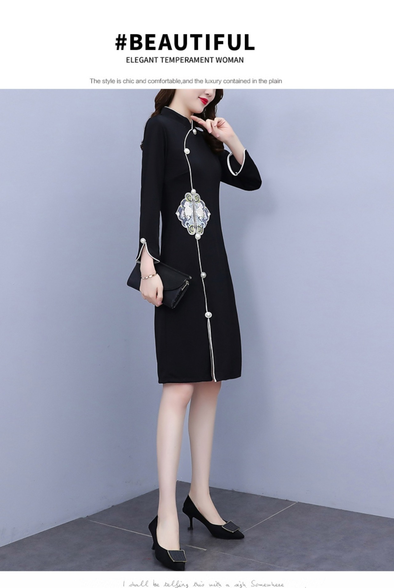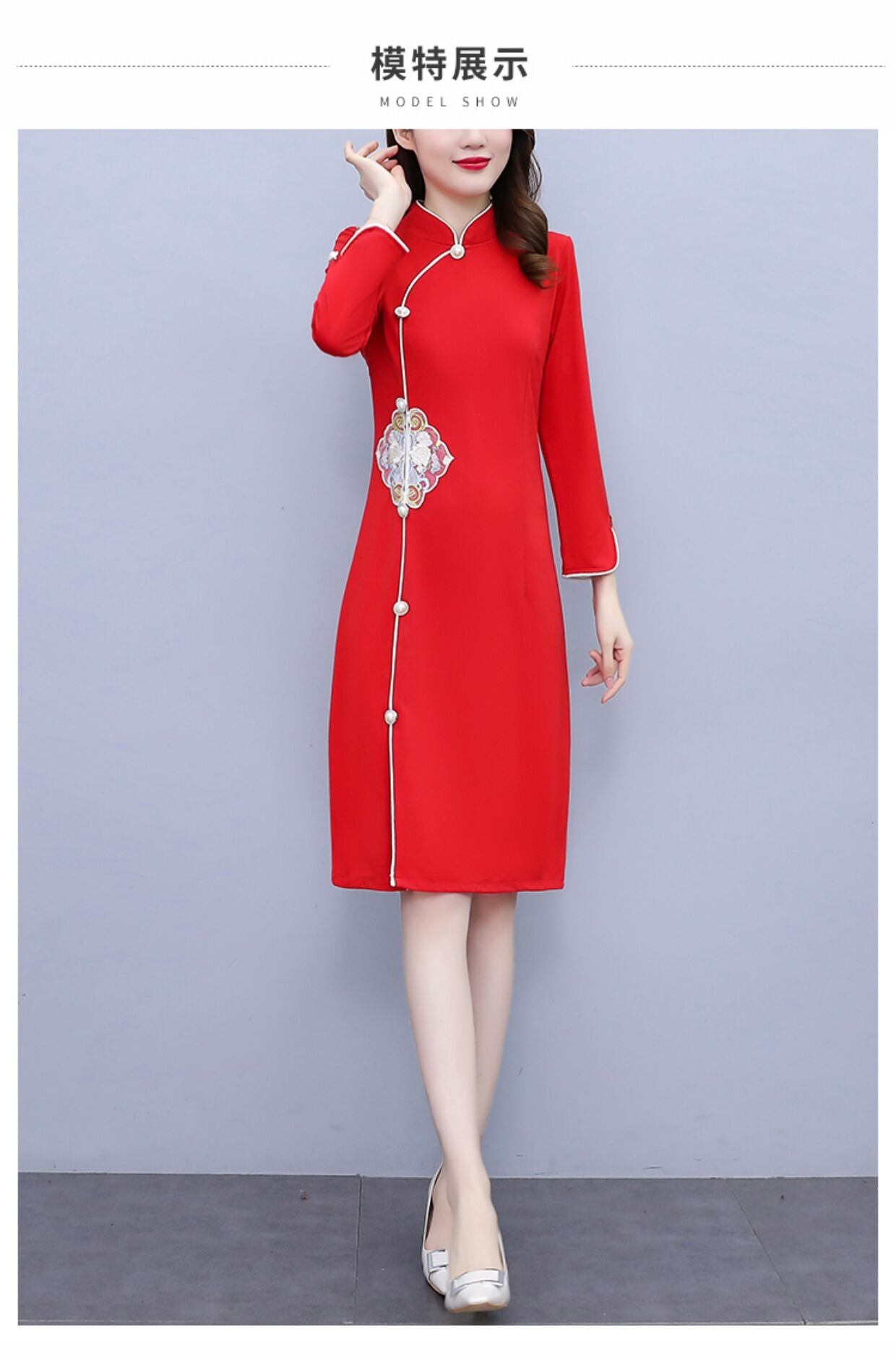 秋の改良されたチャイナスタンドカラー刺繍バックル中国風のスリムな赤いドレスレディスプリット 18k 袍 5xl レッド オータム 秋物