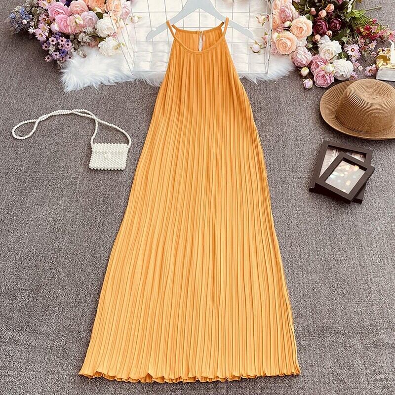 夏と秋のノースリーブ サスペンダー プリーツ ドレス ニップ ウエスト ノースリーブ ボヘミアン ビーチ ドレス女性 Sundrss サマー 夏物 オータム 秋物