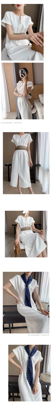 ランナウェイ ホワイト ブラック エンド シック ウエスト ミディ ドレス ボディコン ジッパー スプリット レディース ドレス パーティー クイーン