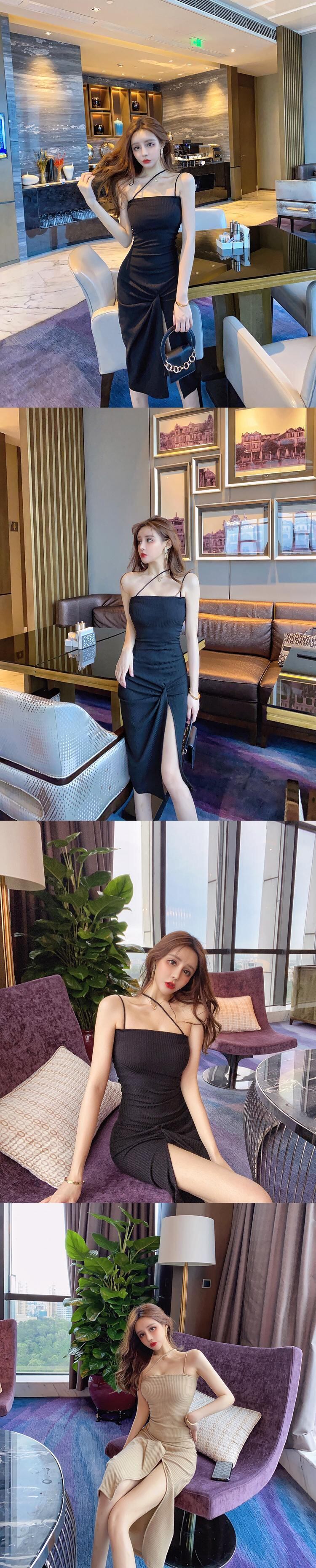 スパゲッティストラップセクシーなボディコンドレス女性の夏のノースリーブひだ分割ナイトクラブパーティータイトなスリングドレス サマー 夏物