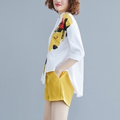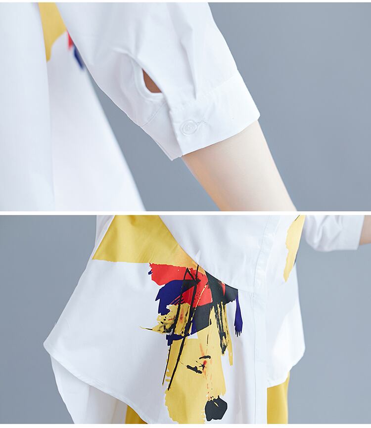 レディースセット イレギュラープリントブラウス+ワイドレッグショーツ オフィスワーク ツーピースセット トップス&ショーツ ブルマー ワイドパンツ 会社 学校 通勤や通学にも