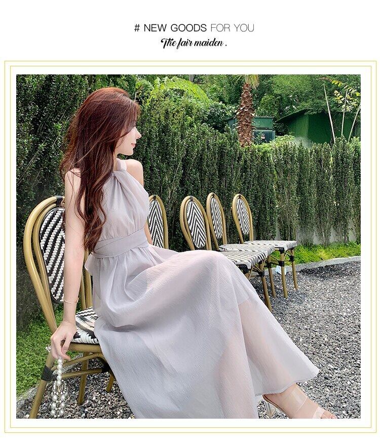 2022 夏の女性のブルーホルターネックオフショルダードレスシックな高級セクシーなパーティービーチロングドレスサンドレス サマー 夏物